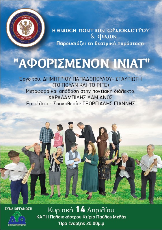 Η πρεμιέρα της παράστασης «Αφορισμένον Ινιάτ» από την Θεατρική Ομάδα της Ένωσης Ποντίων Ωραιοκάστρου και Φίλων θα πραγματοποιηθεί στο Ωραιόκαστρο.