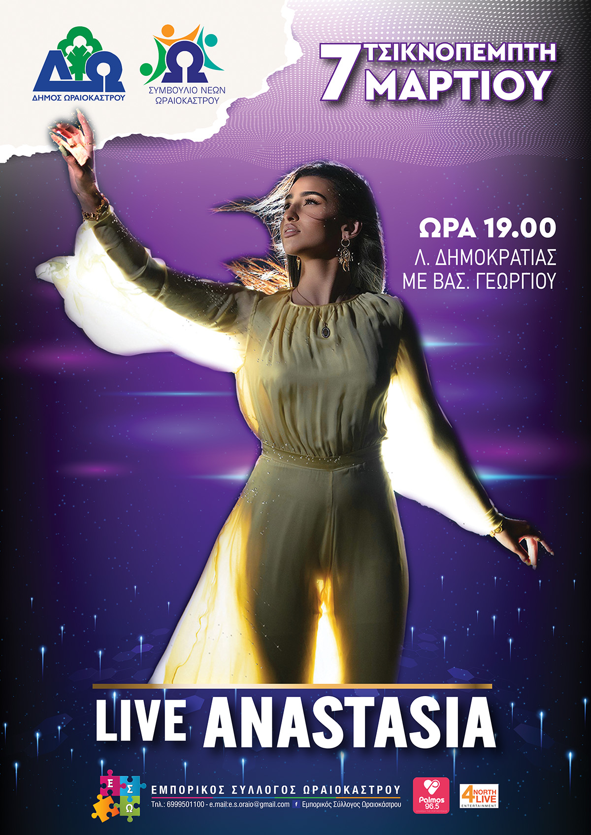 Η μοναδική Αναστασία αποτελεί το viral φαινόμενο της ελληνικής δισκογραφίας και είναι μία από τις πιο δημοφιλείς τραγουδίστριες της νέας γενιάς. Μέσα σε πολύ σύντομο χρονικό διάστημα κατάφερε να κερδίσει την αγάπη του κόσμου με τις σαρωτικές διαμαντένιες και πλατινένιες επιτυχίες της όπως «Αμαρτίες», «Λίγο Λίγο», «Μυστικό», «Μη Μιλάς», «Σημάδι» και «Φλόγα». Τα τραγούδια της συγκεντρώνουν δεκάδες εκατομμύρια streams και views, ενώ κάθε της ζωντανή εμφάνιση είναι sold out!