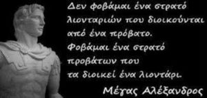 Δεν φοβάμαι ένα στρατό λιονταριών που διοικούνται από ένα πρόβατο. Φοβάμαι ένα στρατό προβάτων που τα διοικεί ένα λιοντάρι