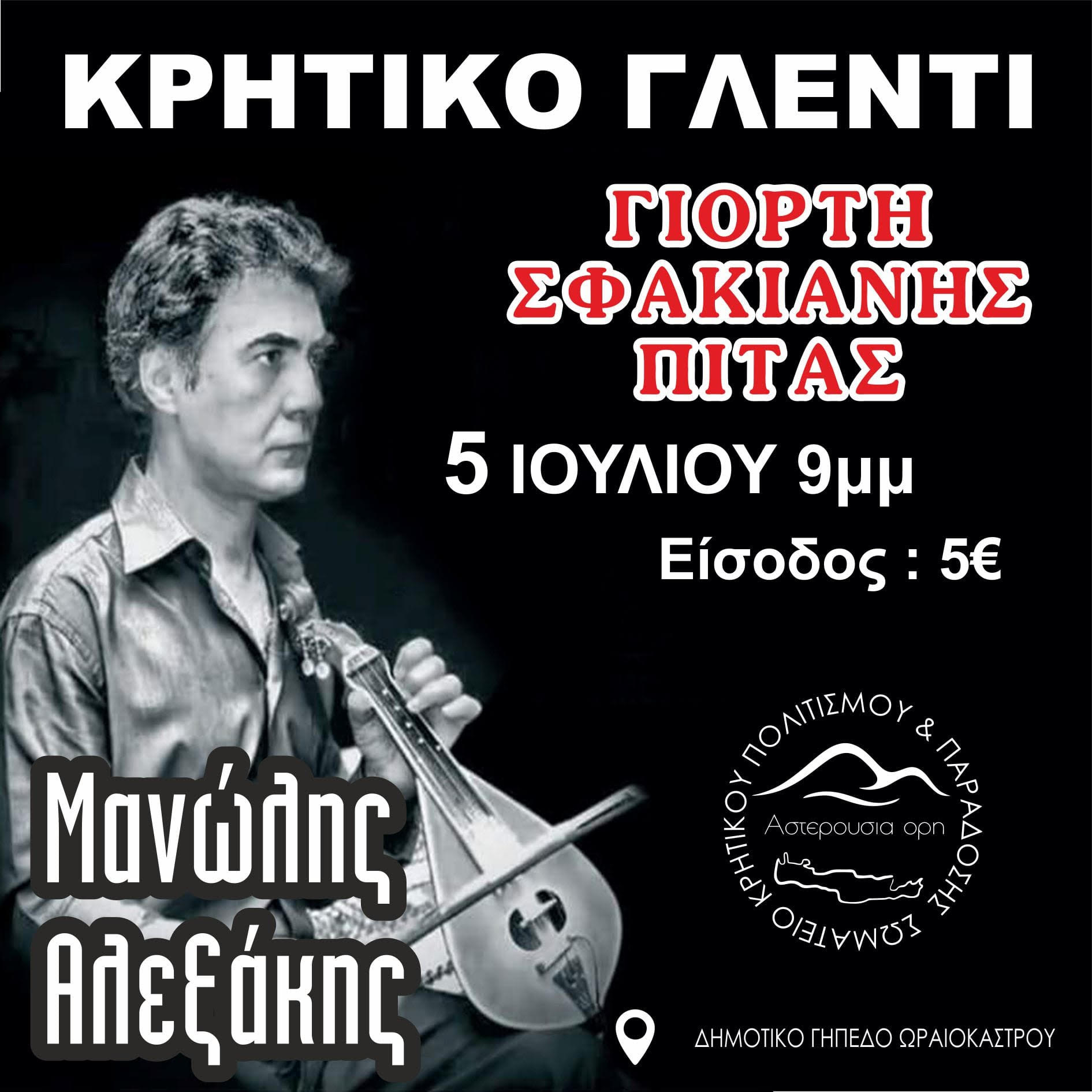 ΣΑΣ ΠΕΡΜΕΝΟΥΜΕ ΝΑ ΔΙΑΣΚΕΔΑΣΟΥΜΕ ΜΑΖΙ ΣΤΟ ΓΝΗΣΙΟ ΚΡΗΤΙΚΟ ΓΛΕΝΤΙ ΠΑΡΕΑ ΜΕ ΤΟΝ ΜΑΝΩΛΗ ΑΛΕΞΑΚΗ, ΜΕ ΠΟΛΥ ΡΑΚΙ ΚΑΙ ΓΝΗΣΙΕΣ ΣΦΑΚΙΑΝΕΣ ΠΙΤΕΣ.