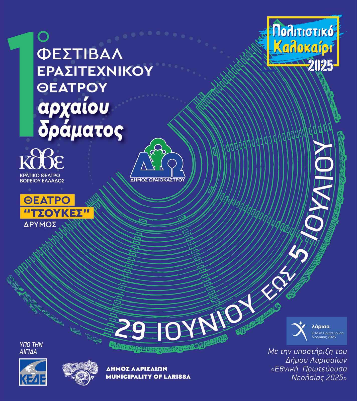 Το 1ο Πανελλήνιο Φεστιβάλ Ερασιτεχνικού Θεάτρου Αρχαίου Δράματος θα πραγματοποιηθεί από 29 Ιουνίου ως 5 Ιουλίου 2025 στο Ανοικτό Θέατρο «Τσούκες» στο Δρυμό του Δήμου Ωραιοκάστρου.