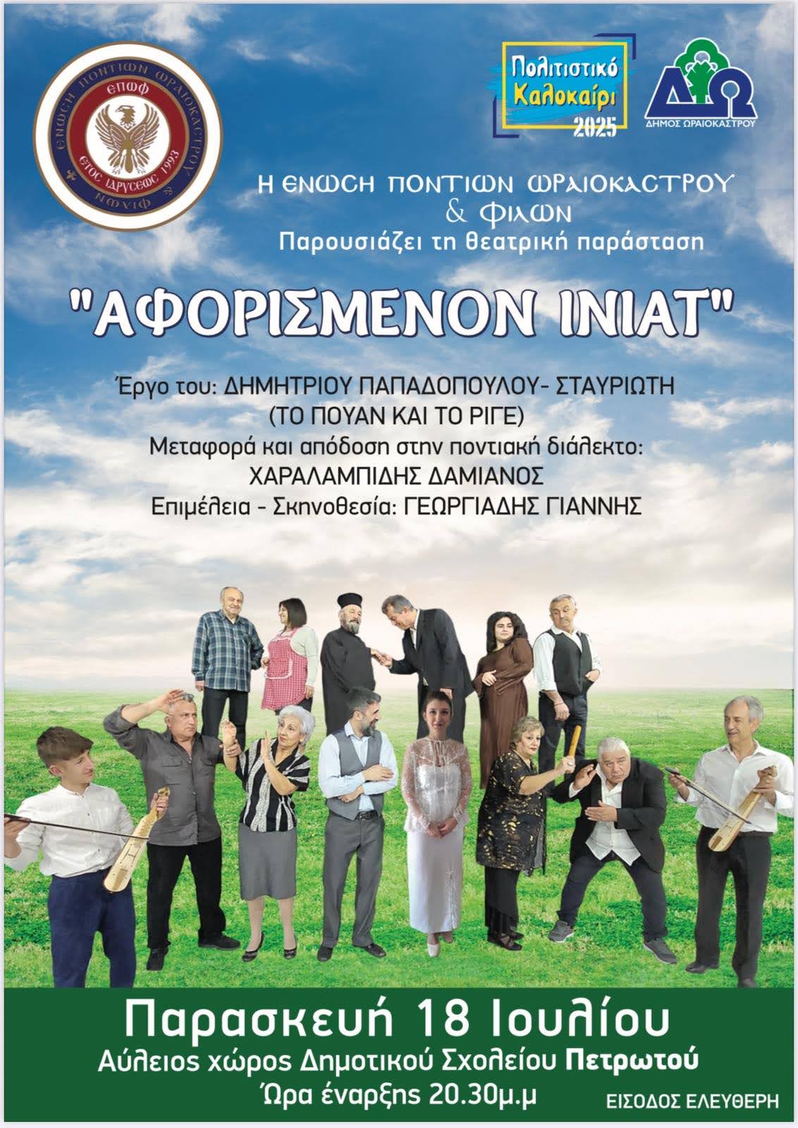Δ. Ωραιοκάστρου – Ένωση Ποντίων Ωραιοκάστρου και Φίλων: Στο Πετρωτό παρουσιάζεται η παράσταση «Αφορισμένον Ινιάτ»