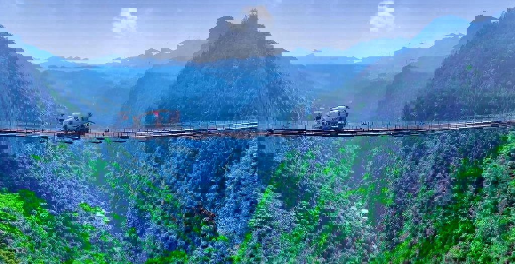 Αυτό το θαύμα της μηχανικής δεν έχει πύργους ή βάση στήριξης, αλλά βασίζεται μόνο σε 4 ατσάλινα καλώδια.Σε ύψος 300 μέτρων και με μήκος 245 μέτρων, χωράει μόλις ένα αυτοκίνητο τη φορά. Και οι δύο πλευρές της περιβάλλονται από προστατευτικά δίχτυα, που συγκρατούν τα διερχόμενα οχήματα.Η οδήγηση στη γέφυρά της είναι απαιτητική, όταν επικρατούν καλές καιρικές συνθήκες. Φανταστείτε πόσο δύσκολη είναι όταν φυσάει!