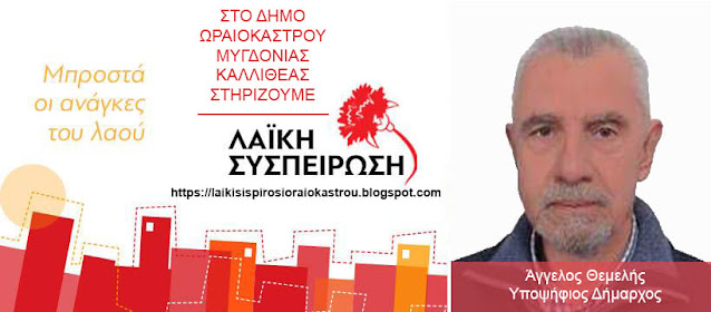 ΨΗΦΙΖΟΥΜΕ ΓΙΑ ΤΟ ΠΡΟΓΡΑΜΜΑ ΤΗΣ “ΛΑΪΚΗΣ ΣΥΣΠΕΙΡΩΣΗΣ ΩΡΑΙΟΚΑΣΤΡΟΥ”. ΓΙΑ ΜΙΑ ΔΙΑΦΟΡΕΤΙΚΗ ΠΟΛΙΤΙΚΗ ΣΤΟ ΔΗΜΟ ΜΑΣ. ΓΙΑ ΤΗΝ ΚΑΛΥΤΕΥΡΕΣΗ ΤΗΣ ΖΩΗΣ ΚΑΙ ΤΗΣ ΚΑΘΗΜΕΡΙΝΟΤΗΤΑΣ ΜΑΣ, ΝΑ ΓΕΜΙΣΟΥΝ ΓΑΡΥΦΑΛΛΑ ΟΙ ΚΑΛΠΕΣ ΣΤΙΣ ΕΚΛΟΓΕΣ ΤΟΥ ΟΚΤΩΒΡΗ.–
