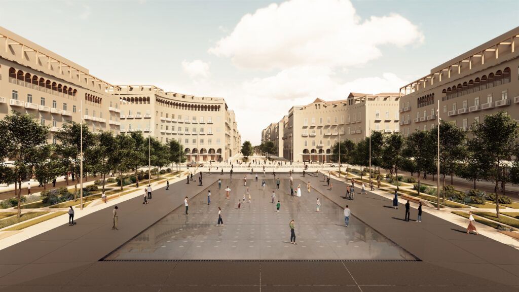 Επτά μήνες μετά την υποβολή της οριστικής μελέτης στον Δήμο Θεσσαλονίκης από την ομάδα που επικράτησε στον διεθνή διαγωνισμό του 2021, τα σχέδια για την ανάπλαση της σημαντικότερης πλατείας και πεζοδρόμου της Θεσσαλονίκης λαμβάνουν πλέον την οριστική μορφή τους. Προηγήθηκε μια διαδικασία συζήτησης και υποβολής παρατηρήσεων από τον δήμο και τις άλλες συναρμόδιες υπηρεσίες, μέσα από την οποία, όπως είθισται σε αυτές τις περιπτώσεις, δόθηκαν κατευθύνσεις για επιμέρους τροποποιήσεις στην αρχική πρόταση χωρίς να αλλοιώνεται ο χαρακτήρας της.