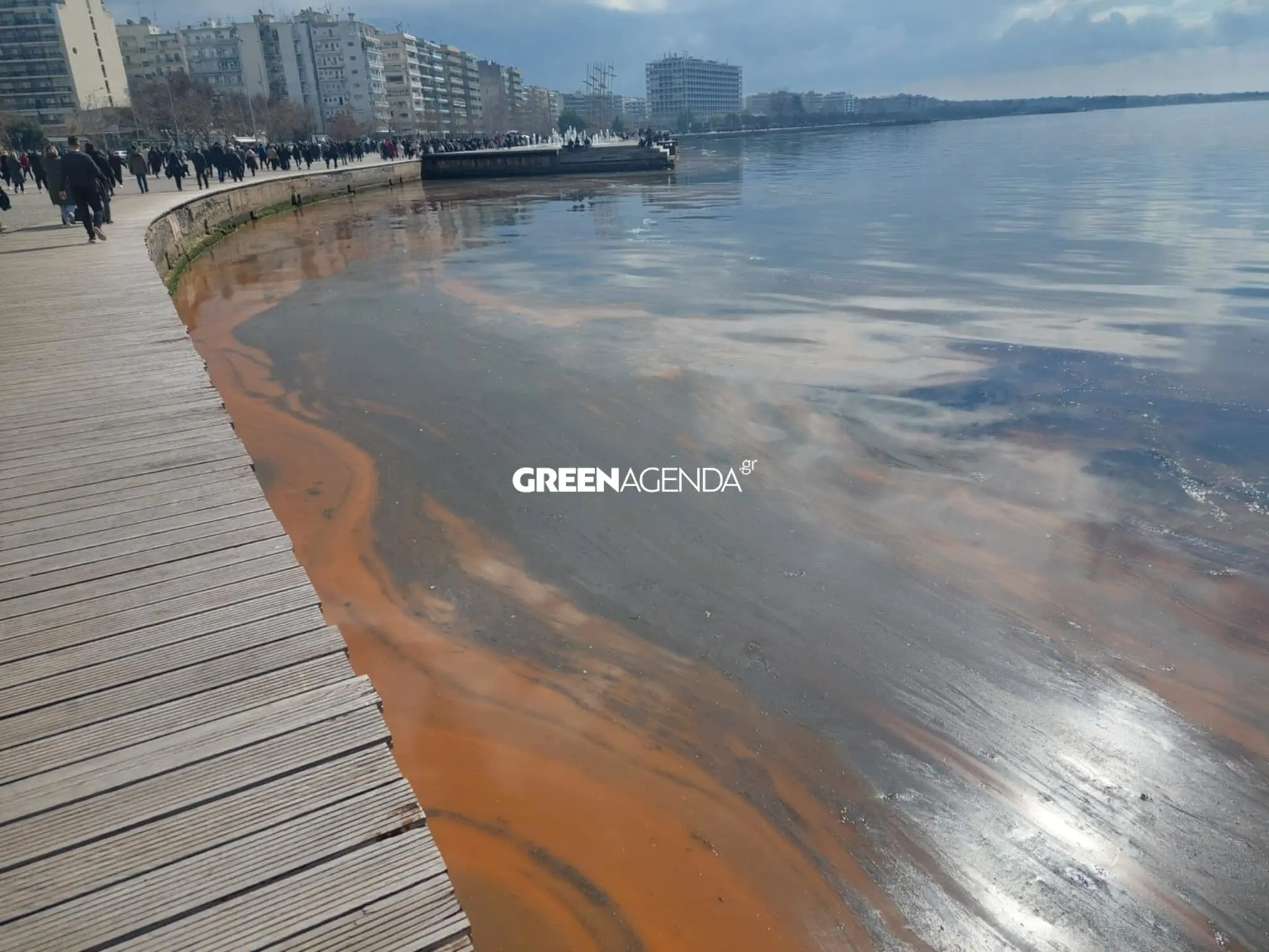 Μια παχύρευστη μάζα καφέ και πορτοκαλί απόχρωσης σχηματίστηκε στη θαλάσσια περιοχή σε μήκος αρκετών μέτρων στον Θερμαϊκό.