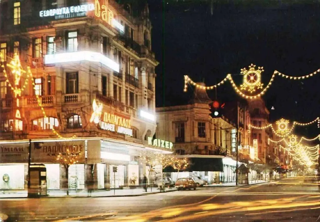 Και δεν ήταν μόνο οι Θεσσαλονικείς που κατέβαιναν παραμονή Χριστουγέννων για ψώνια. Πολύς κόσμος ερχόταν με τα ΚΤΕΛ από όλη τη βόρεια Ελλάδα για να ζήσουν το γιορτινό κλίμα σε μια μεγαλούπολη.