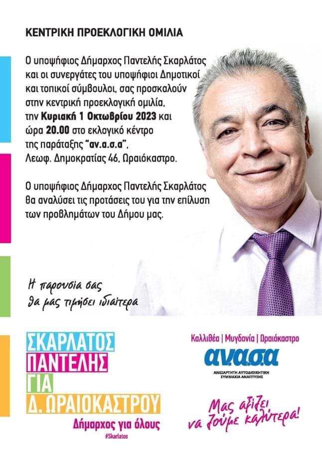 Κεντρική προεκλογική ομιλία του Παντελή Σκαρλάτου