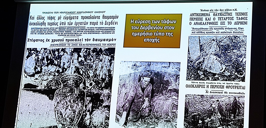 Σήμερα παρουσιάστηκαν μερικά νέα στοιχεία της έρευνας της αρχαιολόγου Ανναρέτας Τουλουμτζίδου στην ομιλία της με τίτλο «Οι τάφοι του Δερβενίου 60+1 χρόνια μετά: νέα στοιχεία και νέες ερμηνείες».