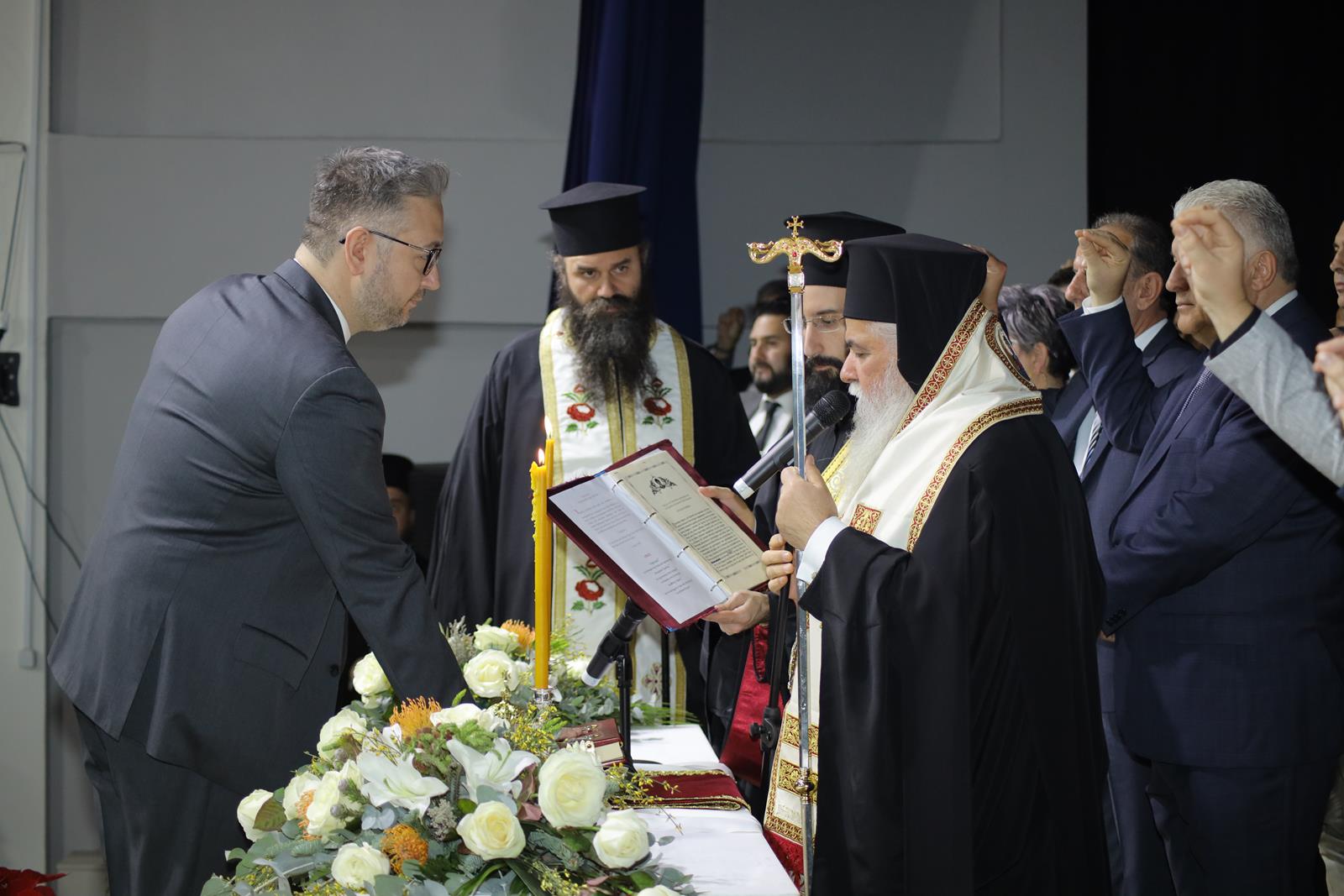 Την ορκωμοσία κατά το θρησκευτικό σκέλος τέλεσε ο Μητροπολίτης Νεαπόλεως και Σταυρουπόλεως, κ. Βαρνάβας. Απευθυνόμενος προς τον επανεκλεγέντα δήμαρχο και τους αιρετούς μίλησε για την ανάγκη και τη σημασία της ενότητας και της συνεργασίας. Ακολούθησε το τυπικό του πολιτικού όρκου.