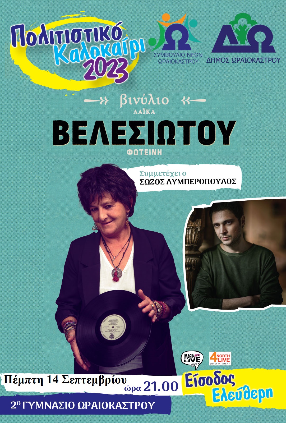 «Πολιτιστικό Καλοκαίρι 2023» Δ. Ωραιοκάστρου: Την Πέμπτη, 14 Σεπτεμβρίου, η συναυλία με την Φ. Βελεσιώτου και τον Σ. Λυμπερόπουλο
