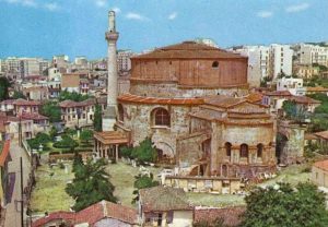 Είναι θολωτό στρογγυλό κτίσμα που κατασκευάστηκε από τον Καίσαρα Γαλέριο, το 304 μ.Χ., όμοιο με το Πάνθεον της Ρώμης και προοριζόταν για ναό του Δία. Ροτόντα ονομάστηκε από το κυκλικό σχήμα. Η διάμετρος του κτιρίου είναι 24.5 μ. και το ύψος 30 μ. Λόγω της μη χρήσης του, μετατράπηκε επί Βυζαντίου σε Χριστιανικό ναό των Ασωμάτων Δυνάμεων ή Αρχαγγέλων και μετά την Απελευθέρωση της Θεσσαλονίκης, το 1912, αφιερώθηκε στον Άγιο Γεώργιο.