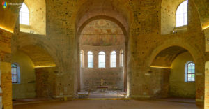 Οι αγιογραφίες είναι του 5ου αι. και σήμερα σώζονται μόνο αυτές που είναι κάτω από το θόλο, γιατί οι άλλες καταστράφηκαν όταν ο ναός μεταβλήθηκε σε μουσουλμανικό τέμενος από τον σεΐχη Σουλεϊμάν Χορτατζή Εφέντη το 1590, τότε έγινε και η προσθήκη του μιναρέ που έχει ύψος 36 μ.