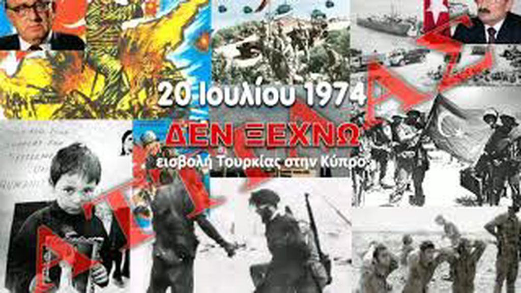 1974: Αρχίζει η Επιχείρηση Αττίλας, το πρώτο στάδιο της τουρκικής εισβολής στην Κύπρο. Περίπου σαράντα χιλιάδες Τούρκοι στρατιώτες, υπό την υποστήριξη της Τουρκικής Αεροπορίας και του ναυτικού εισέβαλαν παράνομα και κατά παράβαση του καταστατικού χάρτη του Συμβουλίου Ασφαλείας των Ηνωμένων Εθνών στις βόρειες ακτές της Κυπριακής Δημοκρατίας. Η απόβαση των Τουρκικών στρατευμάτων που ολοκληρώθηκε σε δύο φάσεις είχε ως αποτέλεσμα την παράνομη κατοχή του 37% της Κυπριακής Δημοκρατίας. Περίπου 200.000 εκδιώχθηκαν από τα σπίτια τους, έγιναν πρόσφυγες στην ίδια τους την πατρίδα, περίπου 4.000 νεκροί, και 1.619 δηλώθηκαν αγνοούμενοι. Οι Τούρκοι κατακτούν το 65% της καλλιεργήσιμης έκτασης, το 70% του ορυκτού πλούτου, το 70% της βιομηχανίας, το 80% των τουριστικών εγκαταστάσεων.