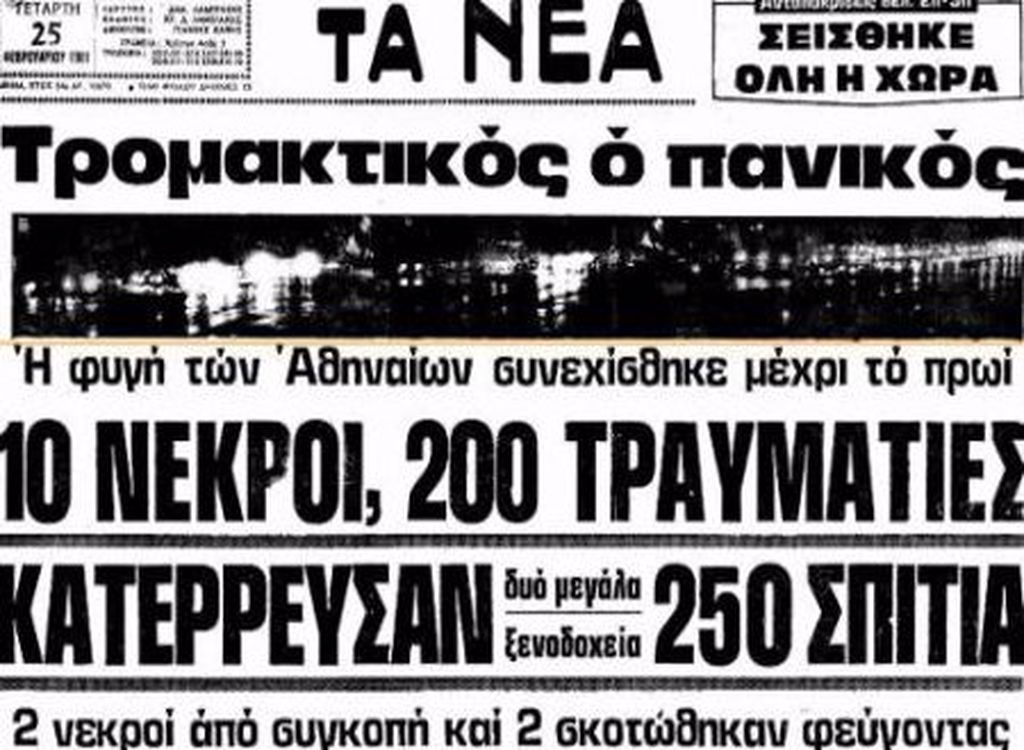 1981: Ο εγκέλαδος χτυπά τις Αλκυονίδες με 6,6 Ρίχτερ, αφήνοντας πίσω του μεγάλες καταστροφές και τους Αθηναίους να περνούν αρκετά βράδια στα πάρκα και τους δρόμους της πόλης. Ο επίσημος απολογισμός των θυμάτων είναι 20 νεκροί, εκ των οποίων οι περισσότεροι από καρδιακή προσβολή.