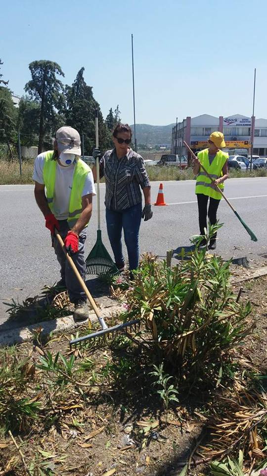 Εργαζόμενοι στον τομέα καθαριότητας συνοδευόμενοι από τον αντιδήμαρχο Καθαριότητας, Περιβάλλοντος, Πρασίνου, Ανακύκλωσης και Πολιτικής Προστασίας Κυριάκο Ιωσηφίδη από νωρίς το πρωί κόβουν χόρτα, κλαδεύουν και απομακρύνουν κάθε είδους σκουπίδια τα οποία βρίσκονται εντός της διαχωριστικής νησίδας, η οποία στο μεγαλύτερο κομμάτι της ανήκει στη δικαιοδοσία της Περιφέρειας Κεντρικής Μακεδονίας.