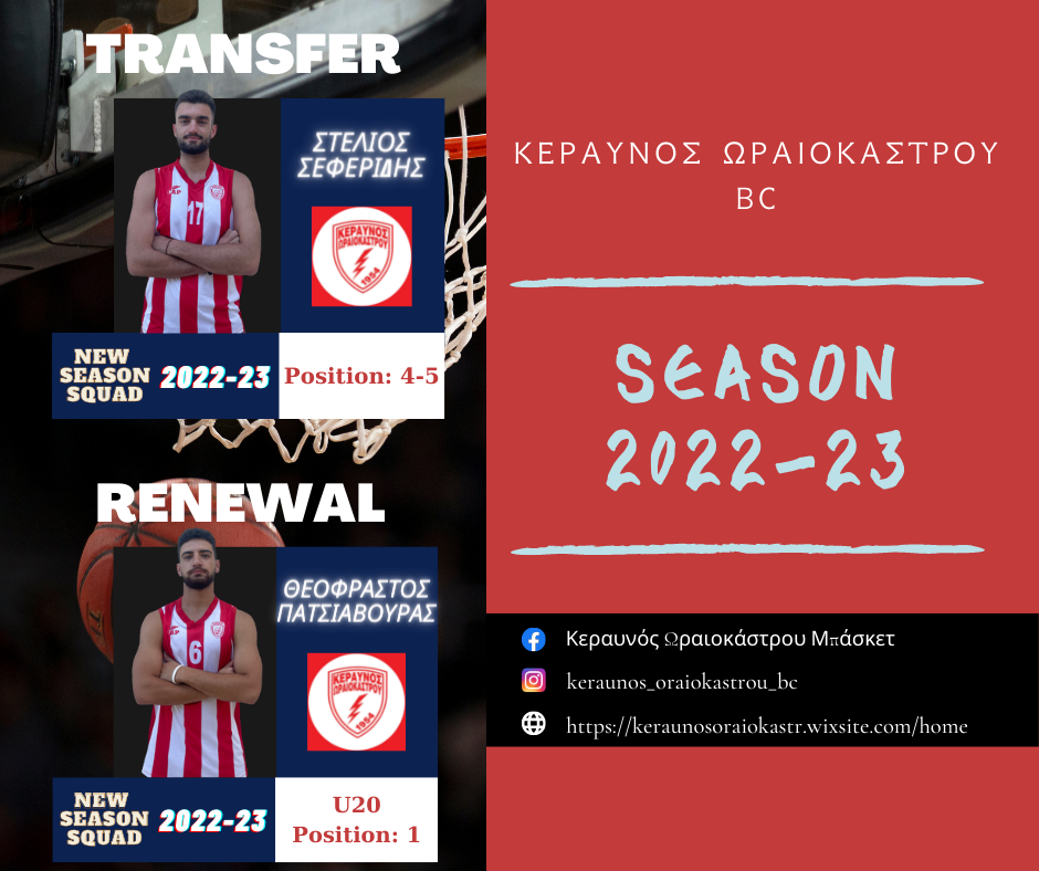 Συνεχίζεται η ενίσχυση για τον Κεραυνό Ωραιοκάστρου BC σε άνδρες και U20