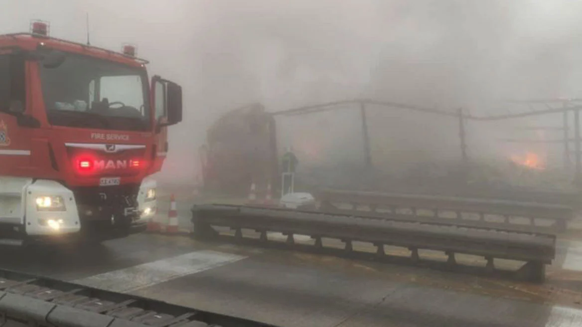 Σύμφωνα με πληροφορίες, το φορτηγό, κινούμενο υπό συνθήκες χαμηλής ορατότητας λόγω πυκνής ομίχλης, προσέκρουσε με σφοδρότητα σε δύο αυτοκίνητα πριν καταλήξει σε στηθαίο ασφαλείας και σε box των διοδίων Πολυμύλου, με αποτέλεσμα να ξεσπάσει φωτιά.