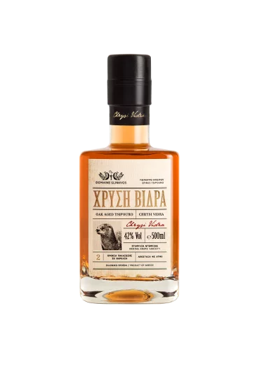 Για να κλεισει η βραδιά, μετά τα λιπαρά, συνοδεία ενός πούρου, με ένα κομμάτι σοκολάτα, ή σε σφηνάκι. Τσίπουρο Χρυσή Βίδρα, ένα χρυσοκίτρινο αναβαθμισμένο απόσταγμα με ιδιαίτερα απαλή επίγευση χάρη στη διπλή του απόσταξη και την παραμονή του για δύο χρόνια σε δρύινα γαλλικά βαρέλια.